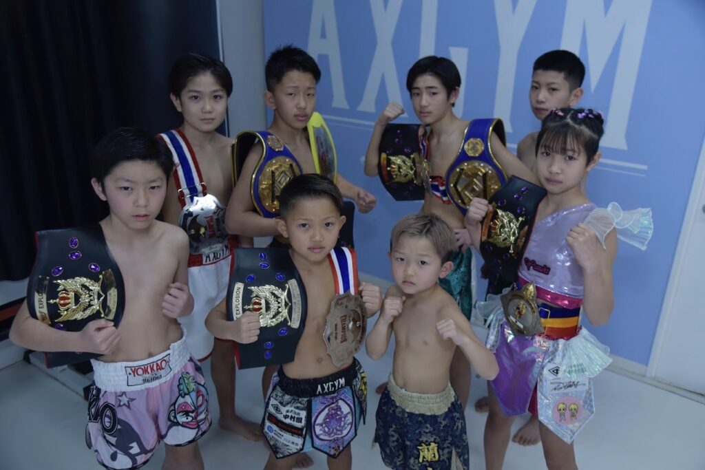 キッズクラス 強い精神&からだ作り キッズクラス 強いとは【優しい】ということ。キックボクシングは個人スポーツと思われがちですが、そうではありません。トレーナーや仲間たちと切磋琢磨して仲間に感謝し思いやり、 高め合いながら成長していきます。→スケジュールはこちら 格闘技は体を鍛えている様で実は心を鍛えています。 子供達には運動するのはもちろん挨拶、礼儀作法、 仲間の絆、思いやりの気持ちなど大事な事も鍛えていけたらなと思っています。 そしてキックボクシングで楽しく、元気に運動しましょう。 キッズ選手クラス AXGYMではチャンピオンが多数生まれております!試合組や試合出場を目指したいキッズ達はキッズ選手クラスもあります。 『練習する時はとことん練習する。遊ぶ時はとことん遊ぶ』を モットーに実戦練習を多くし、試合に勝てるようにチームのみんなで頑張っています。 試合に出場したい子はまずはキッズクラスで基礎を学び、 キッズ選手クラスに上がれる様に頑張りましょう。